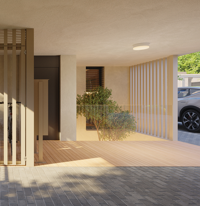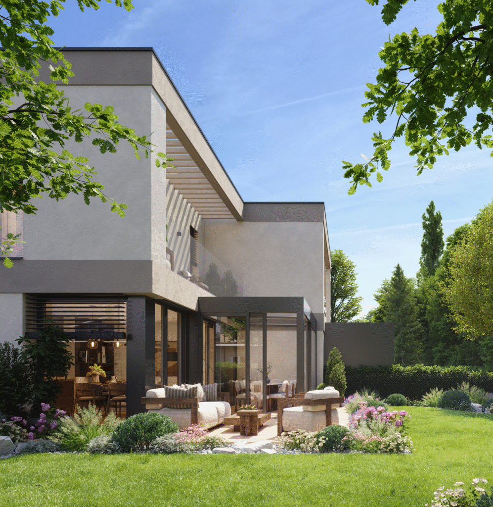Réparties sur trois étages, les villas ELIA s’organisent autour d’un patio qui relie le rez-de-chaussée au sous-sol. Cette ouverture à la lumière naturelle transforme le niveau inférieur en un espace lumineux et modulable, offrant une véritable pièce de vie supplémentaire.
